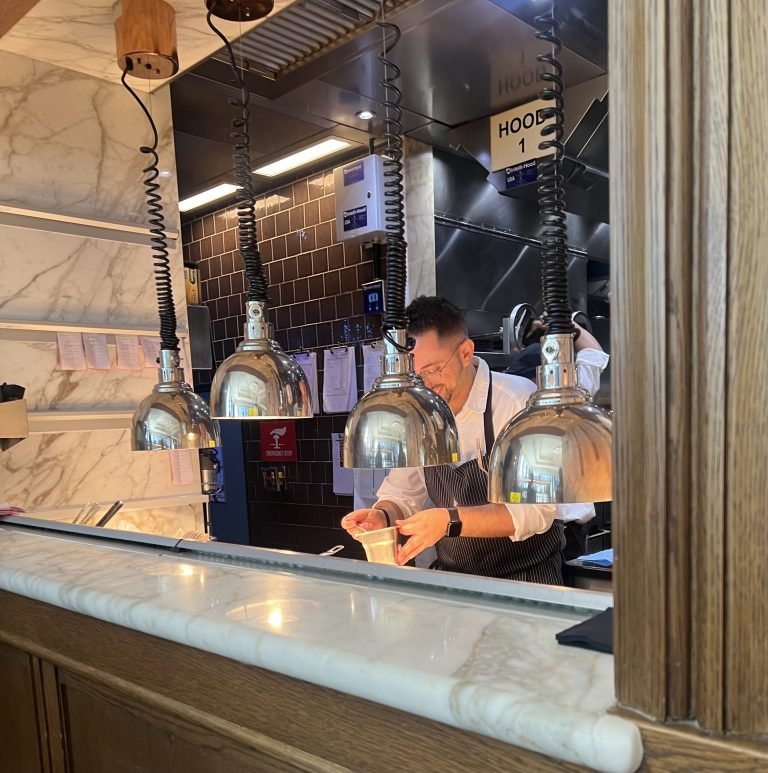 An outsider walked in in a pale lime pyjama suit, looking straight off a catwalk. She too was lunching in the Brasserie, manned since a year after opening by Californian culinarian Michael Mina. Beautiful people, beautiful burrata saladed here in full view, below. And great worldwide conversation. What more could one want for a start-the-week Dubai lunch, here in DIFC-1 (yes, it’s said the Emirate’s Financial Centre is such a success that a DIFC-2 and even a DIFC-3 are on the cards).